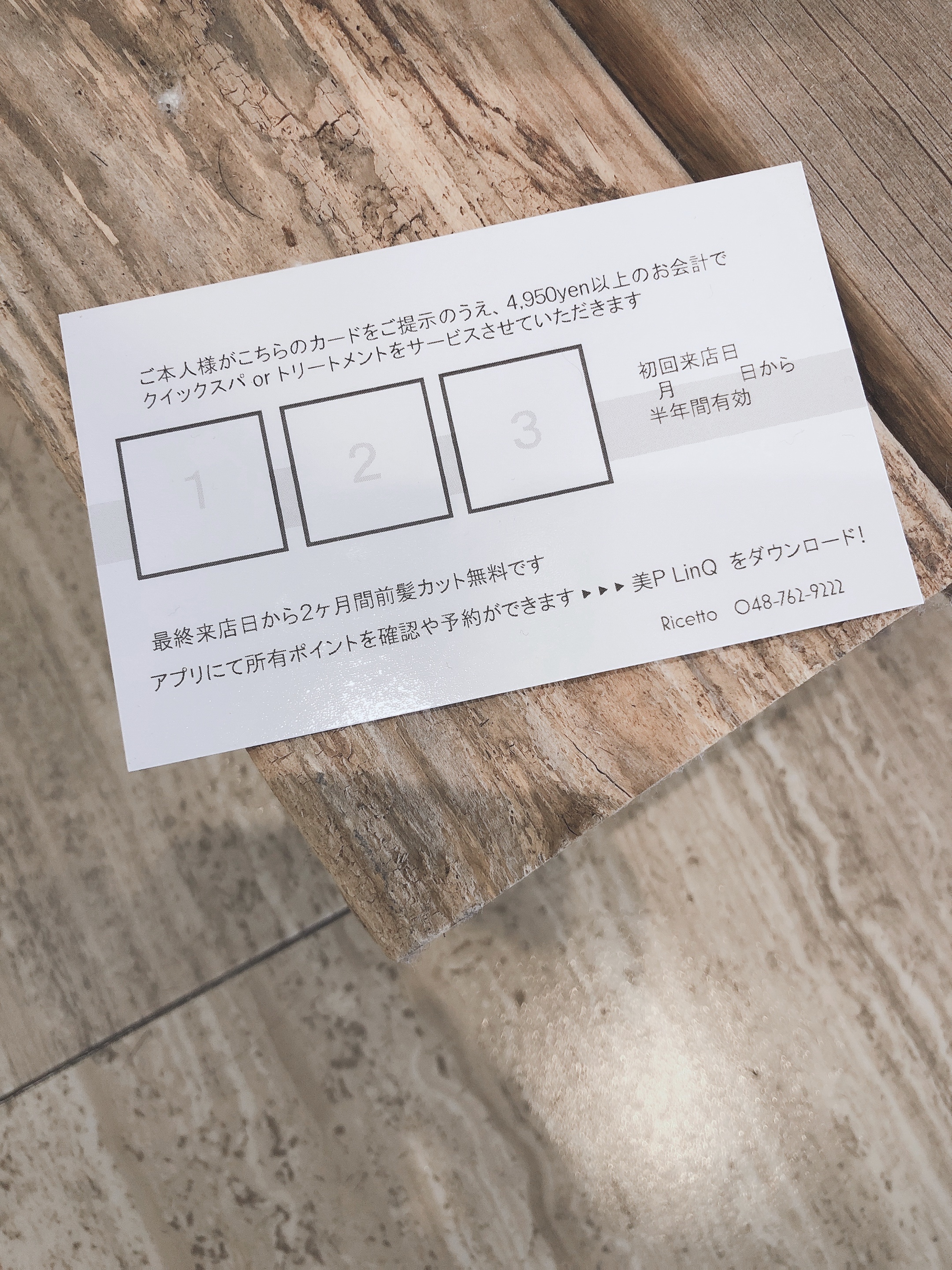 Ricettoではご新規様を対象に次回から使える特別なカードを差し上げています。